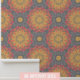Orange & Grey Stylized Geometric Floral Mandala Wallpaper