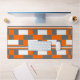 Orange Grey White Check Stripes Pattern Desk Mat.