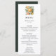Rustic chic oranges, greenery and white floral blossoms arrangement, menu card. Template provides space for names, date and three menu title headings with descriptions. Backing color shown in coordinating dark hunter green, can be customized.