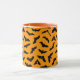 This mug features a spooky pattern of flying black bats with yellow eyes on an orange background, the perfect Halloween mug for bat lovers.