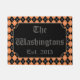 An orange and black color scheme decorates this Halloween Welcome doormat. Personalize this doormat by changing the information to suit your needs. The design is from original art.