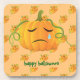 Orange Halloween Sad Pumpkin Seamless Pattern Beverage Coaster