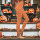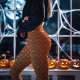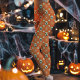 Orange Halloween Skulls and Flowers Pattern Leggings