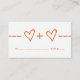 Cute and whimsical Heart Equation Wedding Place Card in orange featuring a fun math equation "joining" two hearts/people. This nerdy design is a charming choice for a math loving couple or any couple wanting something simple but with a hint of whimsy. Space is provided on this product for you to write in the names and table numbers where each of your guests will be seated at your reception. Click on the "Customize It" button to find more personalization options.