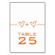 Cute and whimsical Heart Equation Wedding Table Card in orange featuring a fun math equation "joining" two hearts/people. This nerdy design is a charming choice for a math loving couple or any couple wanting something simple but with a hint of whimsy. Easy to customize, simply add the appropriate table number(s) in the space provided. Click "Customize It" to find more personalization options.