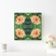 Orange Hibiscus Flower Pattern Square Wall Clock
