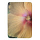The original photograph by MaeFlowers on this large Bath Mat is a closeup of an orange hibiscus flower. The flower petals are a yellow orange color, turning pink into deep red at the flower's center. We can see the details of nature's pollen system, soft red dots and tiny yellow florets. The veins in the petals can be seen spreading outward their ruffled edges. A bit of leafy green background sets off the ruffles.