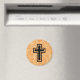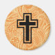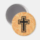 This Elegant Classic Holy Faith Gold Christian Magnet features a Orange Cross design on a brown wooded texture pattern background.