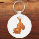 An orange hound dog covering its face. This design looks really effective on these Keychain