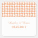 Simple yet elegant Houndstooth Wedding Stickers with a trendy orange and white houndstooth pattern background. Easy to customize with your wedding details. For more customization options, click on the Customize It button.
