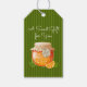 This design depicts freshly jarred orange jam. Flowers, leaves and a green toned striped background. All purpose gifting design.