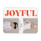 Stylish, modern holiday photo magnet featuring "Joyful" in a trendy, bold orange font along the left side of the magnet. Personalize the cute holiday magnet by adding two of your favorite photos and your name. Designed to coordinate with our Joyful Modern holiday collection.