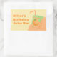 Brighten up your party favors with these customizable rectangle stickers. Featuring a lively orange juice box set against a delightful backdrop that merges light yellow and light orange hues, these stickers allow for text personalization, adding a unique and playful touch to your citrus celebration.