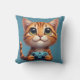 Orange Kitten Holding Game Controller Gamer Cat Throw Pillow