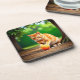 These coasters feature a cute orange tabby cat playing with a ball of string.