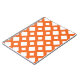 A bold, geometric pattern of large and small white diamonds on an orange background. The vibrant orange forms a lattice which separates the white diamond shapes.