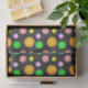 Unique fun birthday party gift Tissue paper. Gift Wrapping Supplies with Orange, lemon, lime and grapefruit summer party pattern. Different sizes of citrus fruit with bold yellow, orange, purple pink and green colors on dark grey.