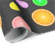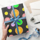 Unique fun birthday party gift wrapping paper. Orange, lemon, lime and grapefruit summer party pattern. Different sizes of citrus fruit with bold yellow, orange, purple pink and green colors on dark grey.