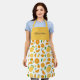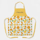 A white apron with a slice, half and full orange and lemon pattern, for citrus lovers. It could add a fresh touch when you're working in a kitchen!