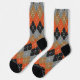 Argyle is trending. Orange Light Gray Tan Off Black Argyle with white stitching. The argyle pattern has long been recognized as a classic design that has stood the test of time. The repeated diamond-shaped pattern evokes a sense of sophistication and elegance, adding a touch of refinement to attire and accessories. Eclectic Grandpa and Jazz Revival are looks both trending in 2024 and argyle fits perfectly into that fashion trend. orange, brown, and gray argyle fabric, creating a classic preppy diamond pattern.