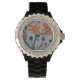 Watch, Rhinestone Black Enamel