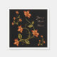 Orange Lillies Floral Pattern Black Napkins