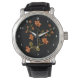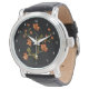 Orange Lillies Floral Pattern Black Wrist Watch