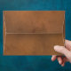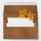 Orange maple leaves on brown stained grunge paper rustic wedding envelope featuring a gold stripe on brown and white background and orange maple leaves on the inside. This elegant modern fall wedding design with a vintage flair is part of a wedding set or collection and is a totally customizable template perfect for an autumn wedding.