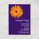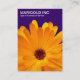 A business card design with an attractive orange marigold design. Company details on the front with name, title and other contact details on the back with a smaller marigold motif