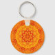 A photo of a perfect orange flower marigold transformed into a vibrant orange mandala designed key chain.