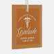 This custom orange medical school graduation Christmas ornament for a nurse or doctor features white typography under a medical caduceus for the class of 2024. Customize with your graduating year under the elegant calligraphy for a great personalized university graduate gift.