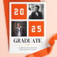 Celebrate your graduate's milestone with this orange modern photo collage graduation announcement. This design features two photo placeholders and a bold, varsity layout with the year prominently displayed. Customize it with your graduate's name and high school. A stylish and contemporary way to announce their achievement!
