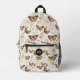 There's a flock of orange Monarch butterflies flying around on this pretty backpack. Along with the butterfly images are gray and orange floral and leaf designs. Your monogram is on a black circle banner on the pocket, and everything is placed on a white background.