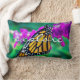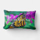 A close-up photo of a delicate, orange and black monarch butterfly resting on a bright magenta flower. "Explore" thoughts of warm, sunny days as you relax on this stunning, colorful photography lumbar pillow. Makes a great gift for someone special!