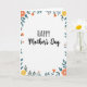 This greeting card features a bright white background with “HAPPY” set near the top in a simple, modern font, giving the message an open, friendly start. Just below it, “Mother’s Day” appears in a flowing cursive style, adding a softer, more tender note ❤️. A border of flowers and leaves wraps around the edges like a gentle embrace, suggesting closeness and care without needing extra words. The blossoms mix soft coral, warm orange, and sunny yellow, with a few small pink buds tucked between them 🌼. Cool green stems and deeper teal leaves weave through the arrangement, creating a calm balance against the warm petals. The text is centered and dark-toned for easy reading, standing out clearly from the pale background. Around the perimeter, the floral details vary in size and spacing, with clusters at the corners and lighter sprigs along the sides. The corners show the densest clusters, where layered petals sit beside overlapping teal leaves and curling green stems.