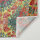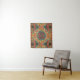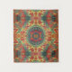 abstract mandala pattern made from orange mushrooms, red flowers and green leaves on a yellow background makes this elegant tapestry to hang on any wall in your home.