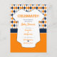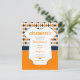 Oversized elegant argyle pattern in school colors of orange and navy blue set the backdrop for this cute baby shower design. A white baby bodysuit has all the text written on it for the big event, which can be a couples shower or just for mom. Design comes in maroon and gray, burnt orange and gray, red and black, green and black, orange and navy, green and yellow, and purple and gray. Matching products available.