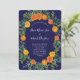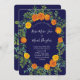 Orange Navy Blue Peony Rose Floral Wedding Invitation