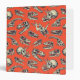 This 3-ring binder features hand-illustrated dinosaur skulls in navy blue and cream on a bright red-orange background.
