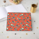 This guest book features hand-illustrated dinosaur skulls in navy blue and cream on a bright red-orange background.