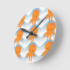 Orange Octopus And Blue Waves Pattern Round Clock