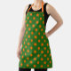 Great color and even though I ordered the kid size, it covers well enough to use during the holidays. I am not a big woman and prefer a shorter apron. I stand 5"6" and the length of the garment goes to mid-thigh. The tie straps fit well at my waist and even though there is no neck strap adjustment, the opening is plenty big enough. I am happy with the size and fit. I am sharing my apron with my 10 year old grandson, too! The color is vibrant and looks good, as shown on the website. The stitching looks strong and reinforced. Photographed is front side and back side of the apron, reinforced straps and coloring. My phone camera may not be the best at showing the details.