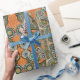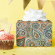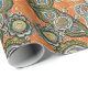 beautiful painted paisley pattern in blue and green on orange with dots and swirls makes this cool pattern wrapping paper.