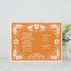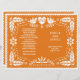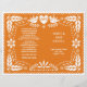 Orange papel Picado love birds wedding fiesta folded program. It displays two white lovebirds and a love heart with the word love and flowers, leaves and small dots on red on orange color. This Mexican folk art style floral wedding template design is fully customizable. Use only this type of paper as it folds well.