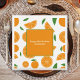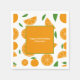 Napkins with a slice, half and full orange pattern. A customizable text is available at the center on an orange background. A fresh decoration for a birthday party, a wedding, a housewarming party, a retirement, a bachelorette party, etc.
