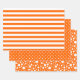 Three patterns in orange and white: basic stripes, polka dots and random spots.