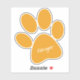 Orange Paw Print Design Custom Cut Contour Sticker with customizable text in various sizes