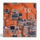 Redefine your professional space with this high-definition graphic featuring a detailed Printed Circuit Assembly (PCBA). Captured in vibrant, deep orange tones with crisp silver and white conductive traces, this design showcases the intricate architecture of modern electronics—including integrated circuits, resistors, and capacitors—in stunning clarity.