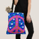 Orange Peace Sign on Blue Tote Bag