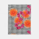 Orange Pink Flowers Black White Check Fleece Blanket . Custom design by Tell3People